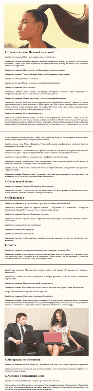 Как правильно преподнести себя в условиях реальной житейской обыденности, а иногда и стыда за себя, свою работу, родственников и финансовой ямы, в которой она находится. От правильности представления себя без обмана перспективному жениху зависит будущее!