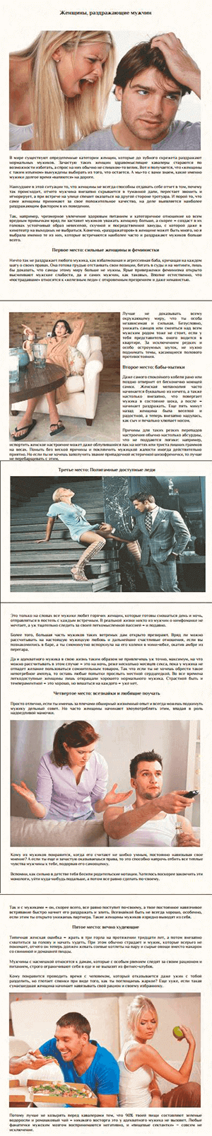 В мире существуют определенные категории женщин, которые до зубного скрежета раздражают нормальных мужиков. Зачастую таких женщин здравомыслящие кавалеры стараются по возможности избегать, а спрос на них обычно не слишком-то велик.